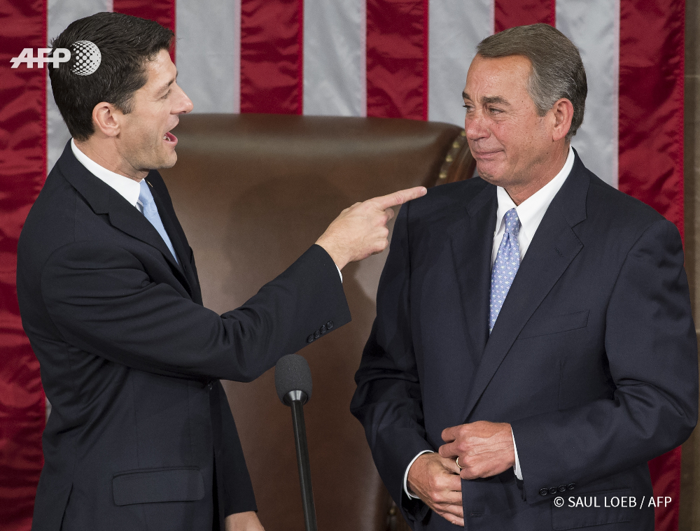 Saul Loeb a obtenu le prix d’excellence dans la catégorie « On Capitol Hill » pour sa photo de Paul Ryan, nouveau président républicain de la chambre des représentants plaisantant sur les larmes versées par son prédécesseur, le républicain John Boehner, lors de son investiture, le 29 octobre 2015.