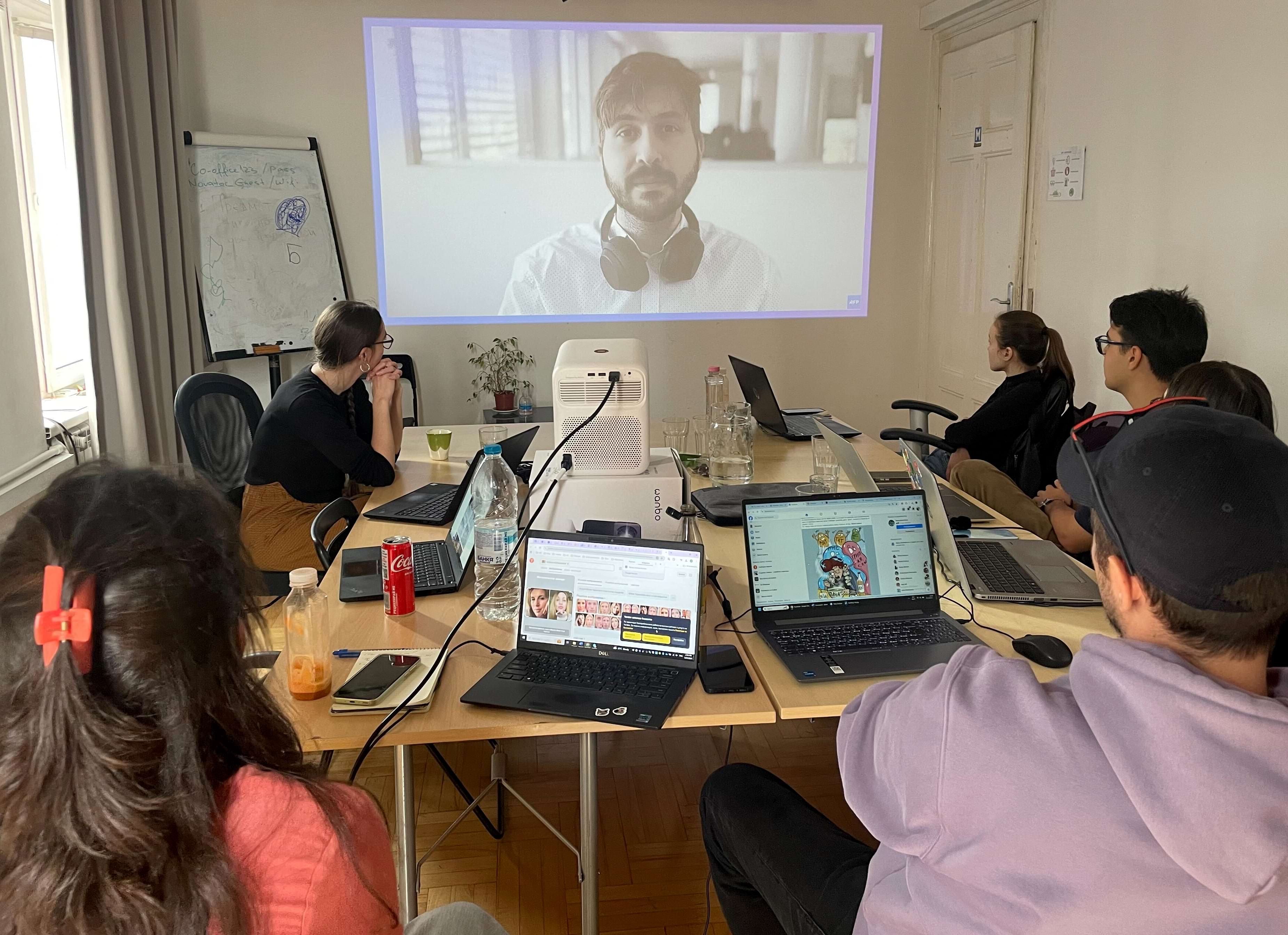 Quatre journalistes du service de l’investigation numérique de l’AFP se sont rendus à Sofia, Bucarest et Budapest en mars et avril 2025, pour proposer des formations au fact-checking à des journalistes et des étudiants en journalisme.