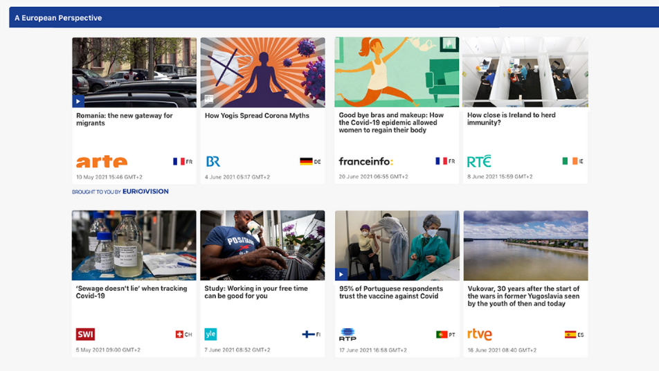 Lors de la première phase de ce projet lancé en juillet 2021, onze médias de service public (MSP) se sont associés à l’Union Européenne de Radio-Télévision (UER) pour proposer une offre nouvelle d’information collaborative permettant au public d’accéder à des contenus vérifiés, fournis en temps réel et dans les langues de différents pays européens. Ce sont ainsi 6500 articles qui ont été mis à disposition sur les sites Web des médias partenaires, en huit mois à peine. Avec plus de 45 millions de vues, le public a de toute évidence plébiscité cette initiative. Les MSP qui participent au projet peuvent afficher un fil d’actualités dédié sur leurs pages d’accueil ou en complément de leurs articles, soulignant ainsi l’importance croissante d’un angle européen dans leur couverture de l’actualité.