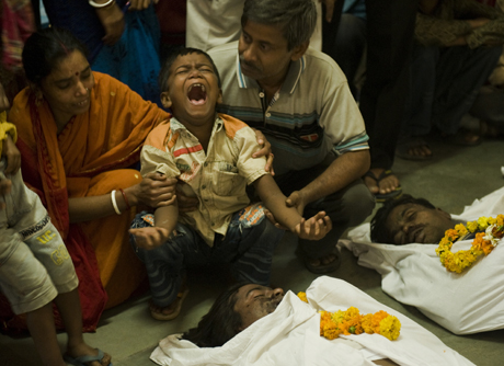Manpreet Romana remporte une mention honorable dans la catégorie « International News » pour l’image de cet enfant en pleurs lors de la crémation de son père, mort dans l’effondrement de leur l’immeuble à New Dehli, le 15 novembre 2010.