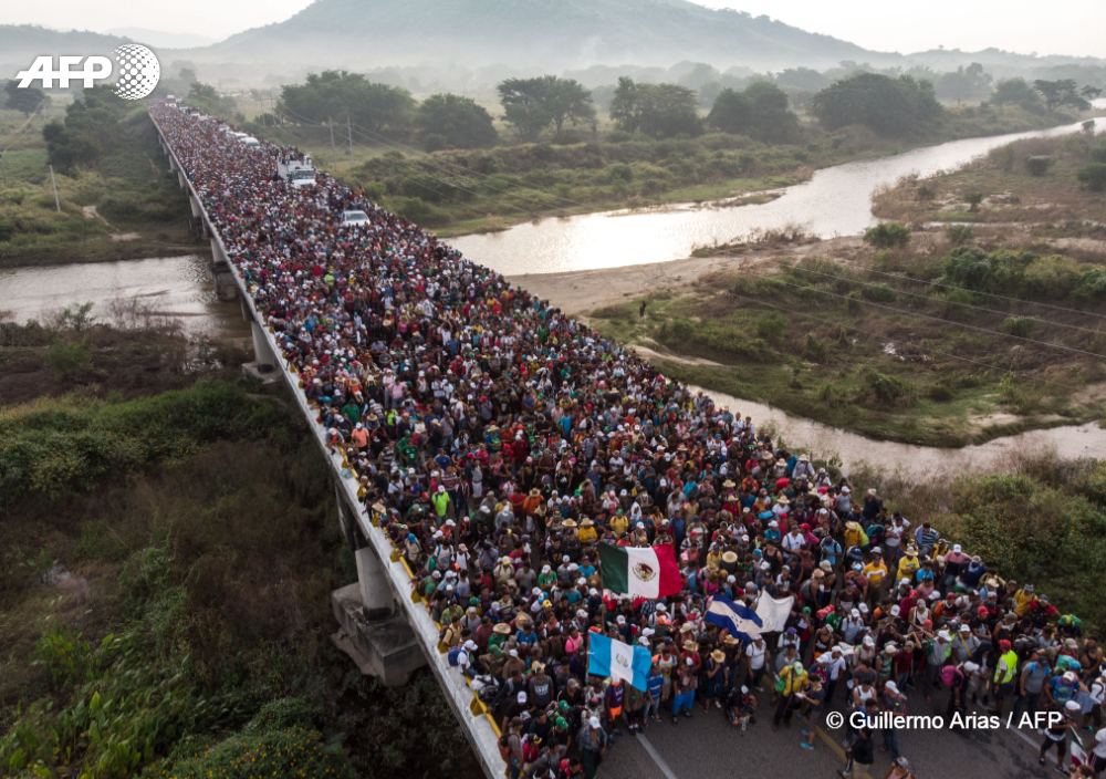 Guillermo Arias a remporté la 1e place de la catégorie « Actualités » pour sa photo aérienne immortalisant la migration hondurienne se dirigeant vers les Etats-Unis, au départ d'Arriaga en direction de San Pedro Tapanatepec, au sud du Mexique, le 27 octobre 2018.