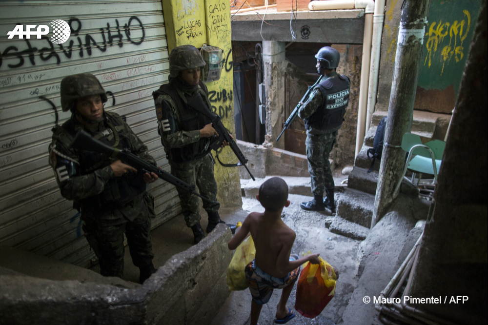 O fotógrafo Mauro Pimentel, do escritório da AFP no Rio de Janeiro, recebeu uma Menção Honrosa do Prêmio de Jornalístico Vladimir Herzog de Anistia e Direitos Humanos, no dia 25 de outubro, por uma foto que mostra a ocupação do exército brasileiro na Rocinha. A imagem denuncia o impacto da guerra que atinge as favelas cariocas na vida dos moradores.